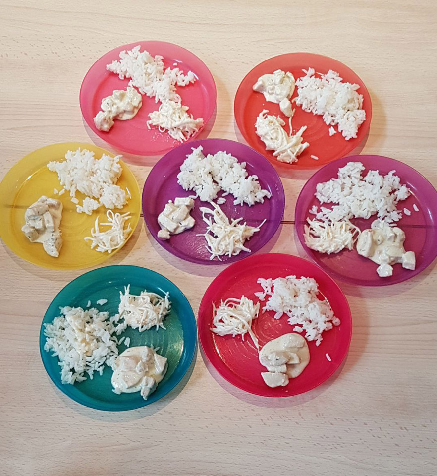 A cette occasion la crèche a pris des couleurs. Chaque jour le menu a été servi teinter d’une couleur particulière en faisant participer les enfants en portant un vêtement ou un accessoire de la couleur du jour.