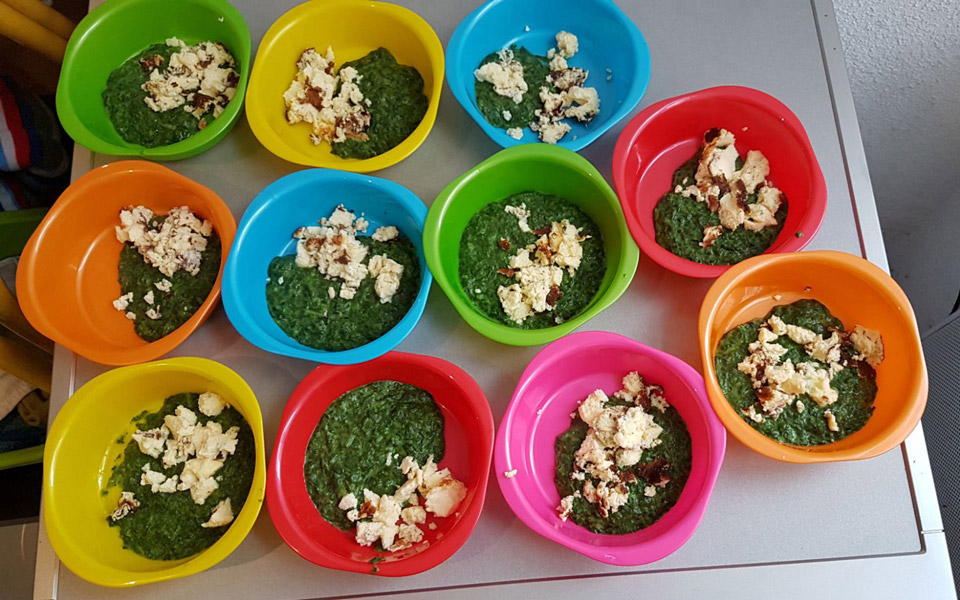 Nos petits plats sont réalisés sur place avec des aliments provenant de producteurs locaux. Nous veillons au respect du rythme des saisons et à l’équilibre alimentaire des p’tits lutins pour élaborer nos menus quotidiens.