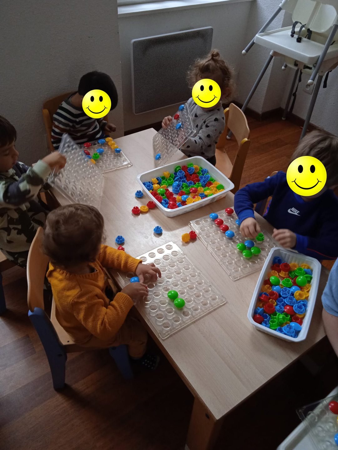 Toutes nos activités sont portées sur l’autonomie et la socialisation à travers des ateliers proposés en fonction des âges respectifs des enfants, ateliers de découverte en lien avec les saisons, les couleurs, les différentes fêtes dans l’année, jeu de transvasement, manipulation, construction, libres ou dirigés.