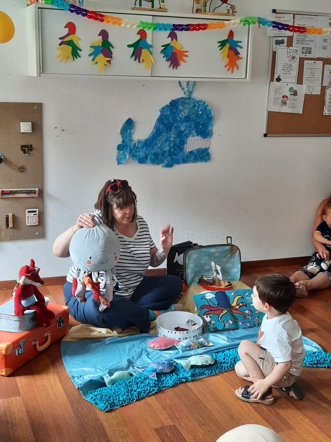 Le déroulement de la journée permet de fixer des moments phares (regroupement du matin, avec ses chansons et comptines, coin des émotions, atelier lecture).